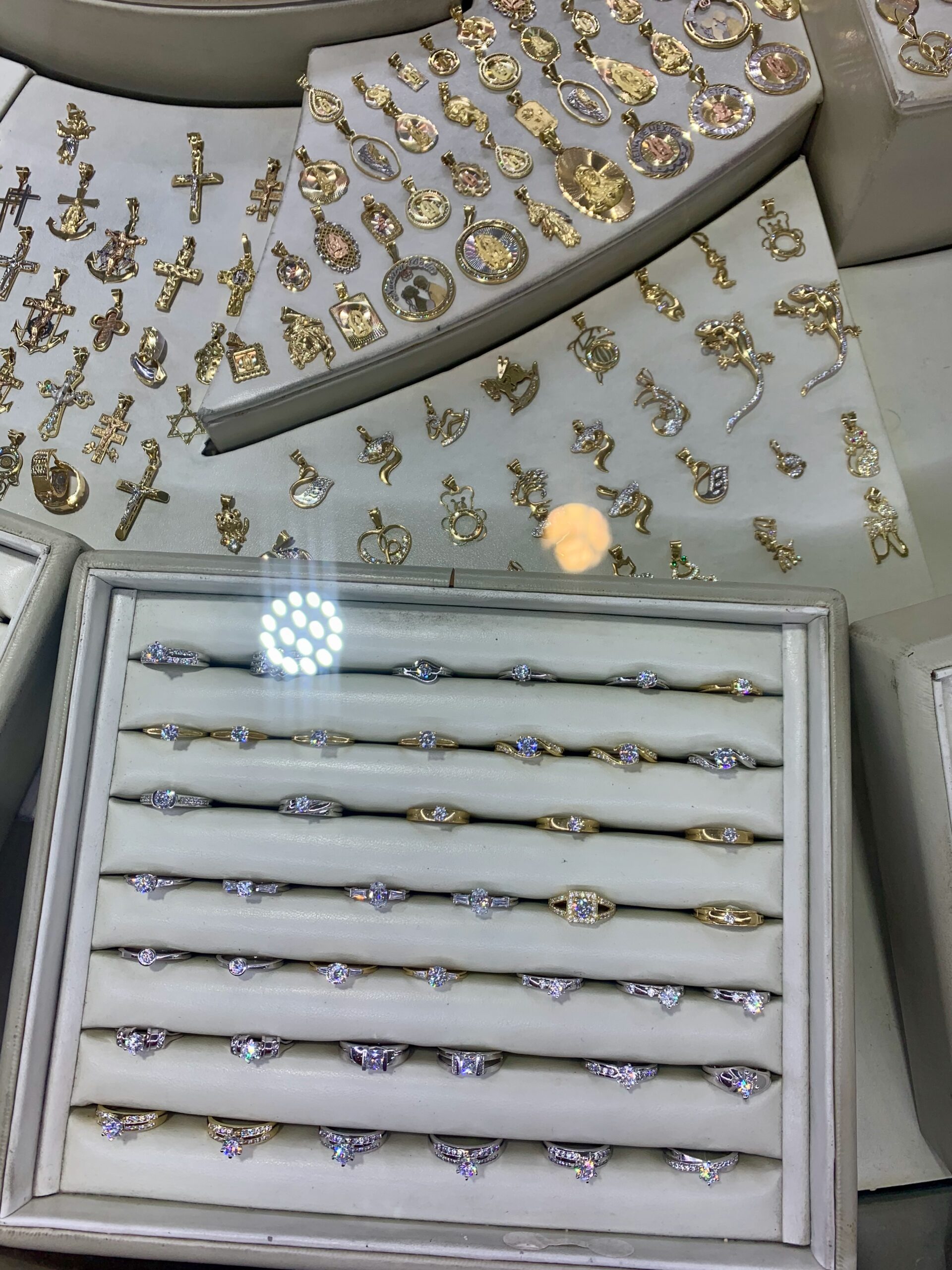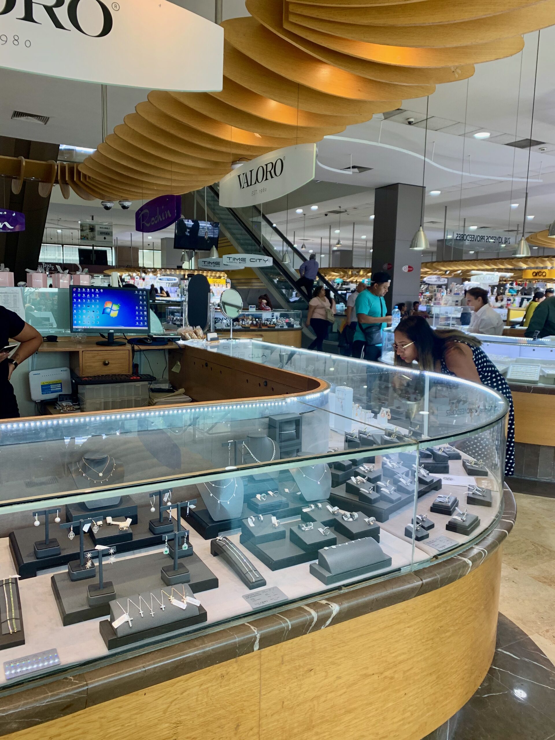Right around the corner from the Mercado San Juan De Dios in Guadalajara is the Centro Joyero. This place is a very nice indoor, multi-story market full of fine jewelry vendors. You’l notice there are even armed guards at the door when you walk in. But don’t let that scare you. It’s a perfectly safe place to shop or just browse. You can find great jewelry here made from gold, silver, precious stones, artificial stones.