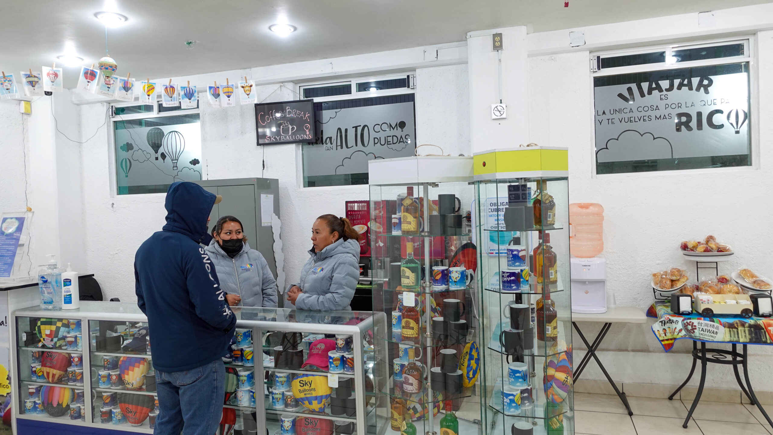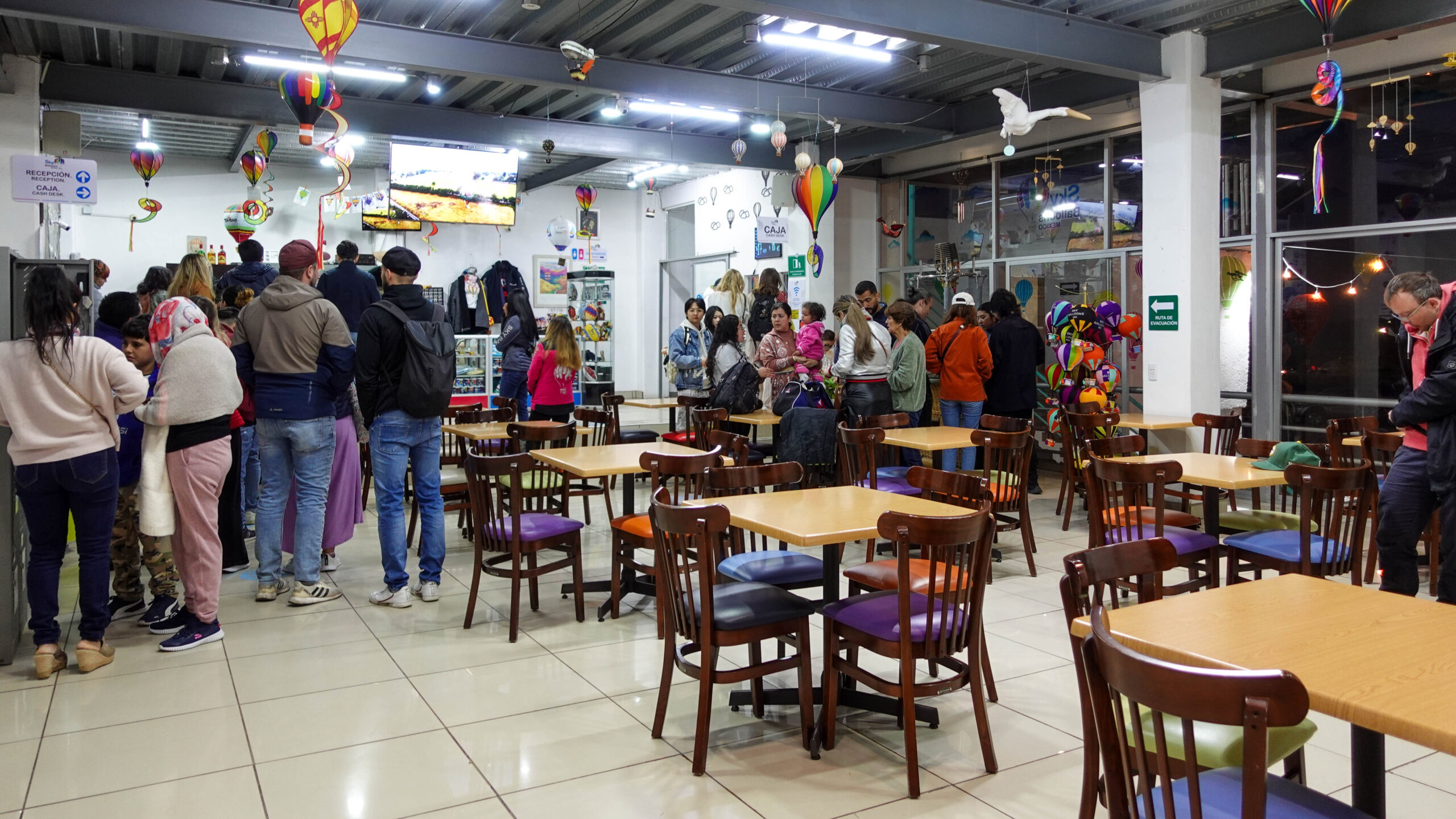 The hot air balloon ride over Teotihuacan starts just before sunrise. My group purchased tickets with Sky Balloons Mexico. We checked in at 6:15 am, quickly signed paperwork, and left our personal items in lockers under lock and key.
