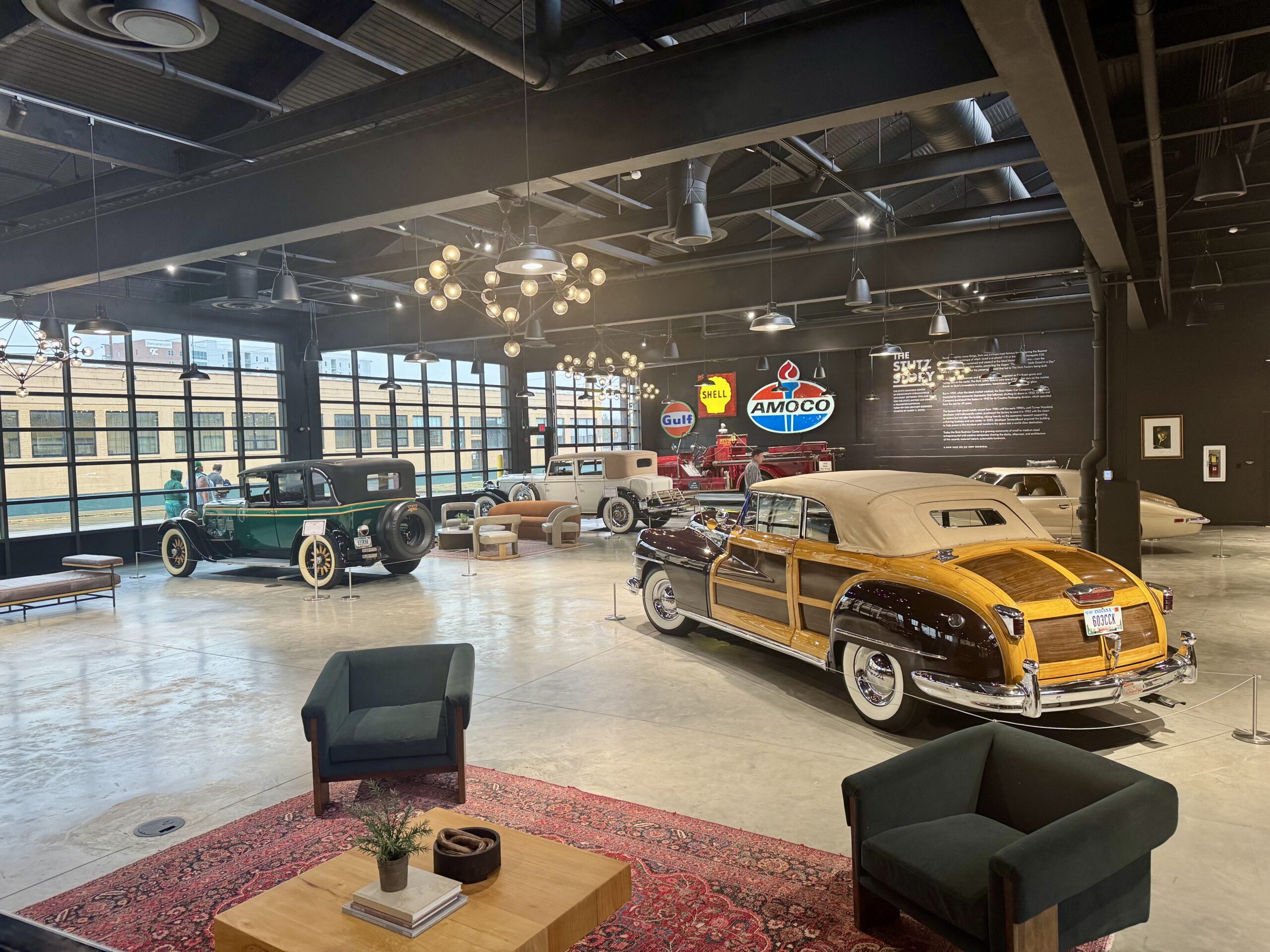 After a satisfying meal, we explored a hidden gem—Stutz Car Museum, just five minutes from The Eagle. With free entry, this intimate exhibit features stunning vintage cars and cozy lounge areas. We took our time admiring the automobiles, relaxing in the inviting space before our next stop.